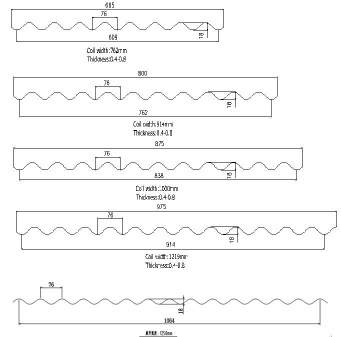 Corrugated Profile Drawings and Machine Pictures of Corrugated Sheet Roll Forming Machine: